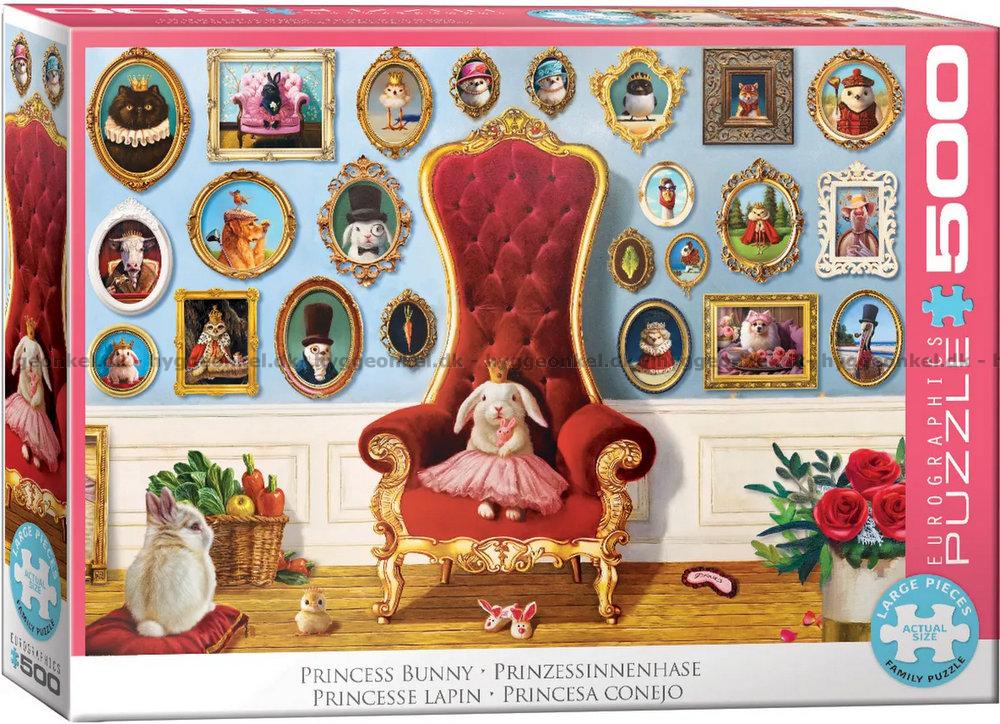 - Kaninen sitter i den stora, röda tronstolen. Runt tronen är väggen täckt av många inramade porträtt av olika djur, alla klädda i kungliga kläder.