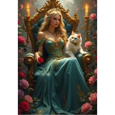 - Den unga kvinnan sitter majestätiskt på en överdådig tron omgiven av rosor och levande ljus