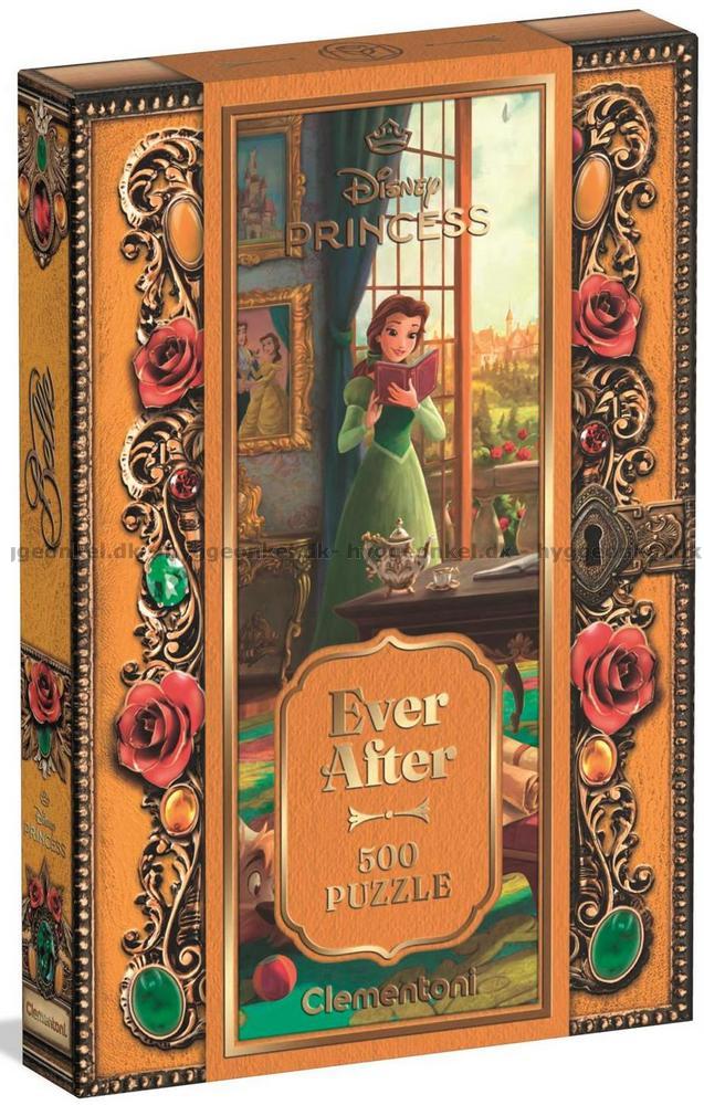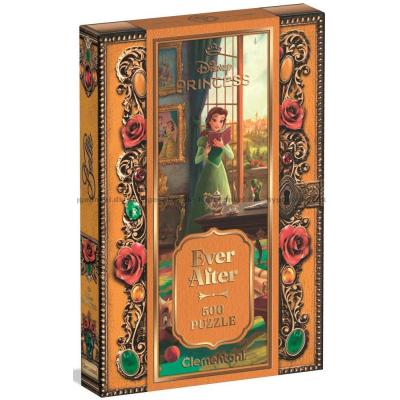 - Belle i det stämningsfulla biblioteket. Från fönstret kan hon njuta av utsikten mot slottet och trädgården, om hon tittar upp från boken