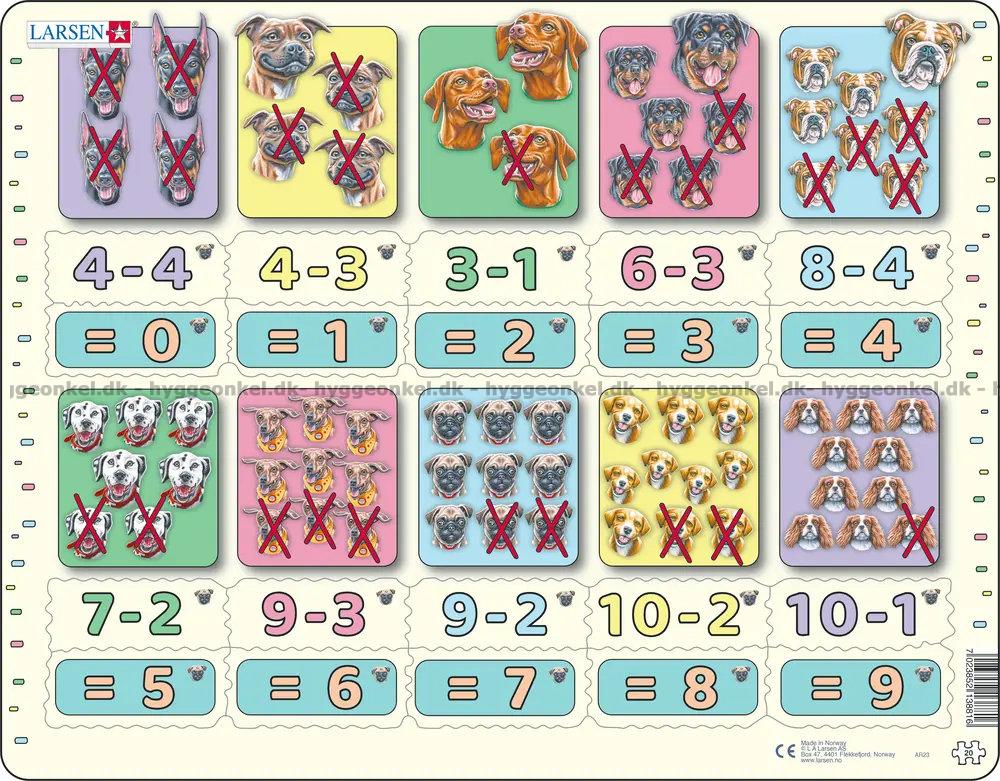 Matematik: Minusuppgifter med hundar - Rampussel, 20 bitar