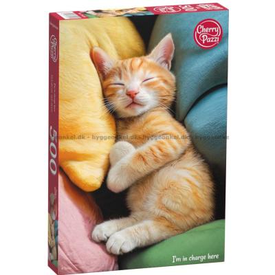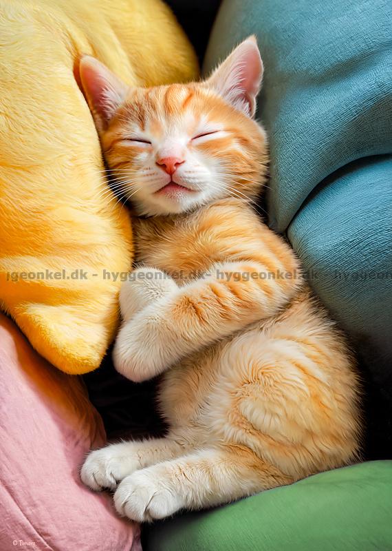- Den rödrandiga katten ligger tryggt och sover