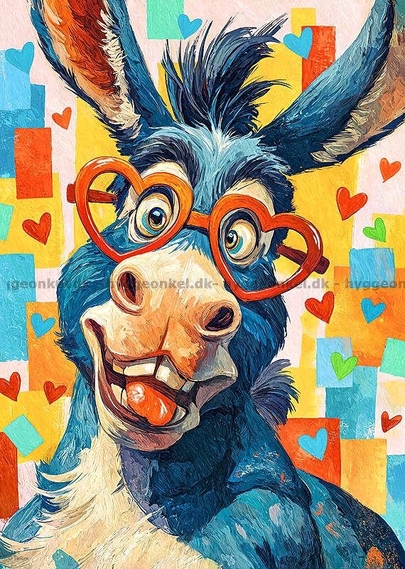 - Det härliga åsnan bär stora, röda glasögon formade som hjärtan