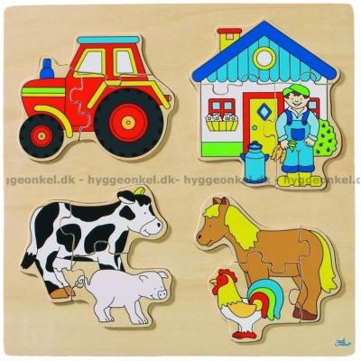 - Snyggt kubpussel i trä. Från 3 år. Här finns många timmars lek. 6 olika motiv som visar årets gång på bondgården.