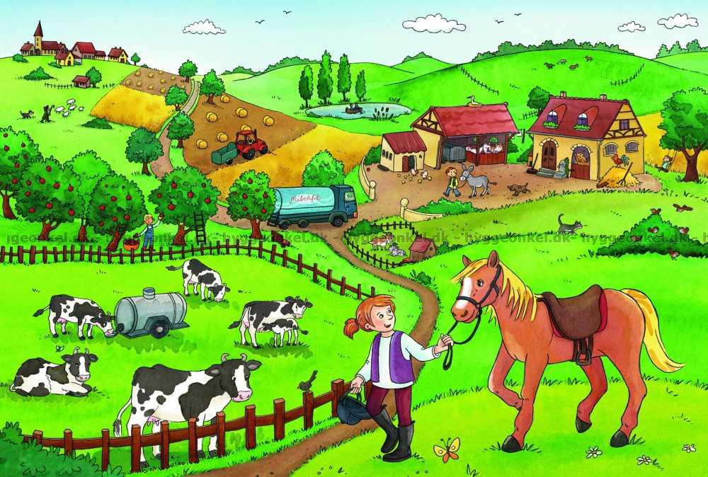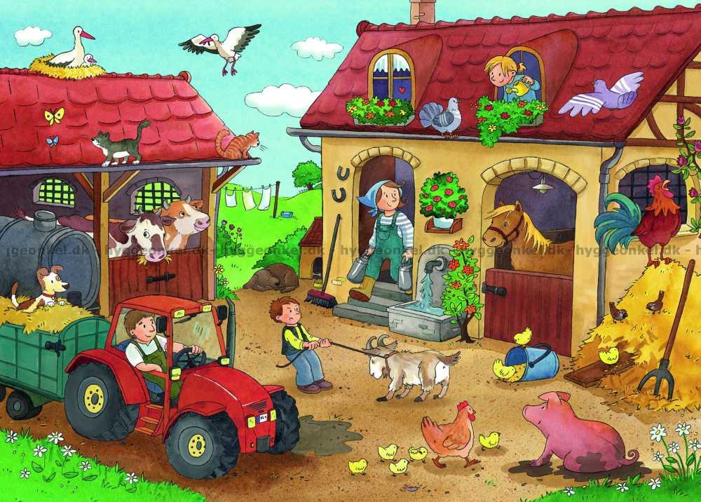 - Alla – stora som små – har sina uppgifter på denna bondgård. I asken finns det 2 olika pussel