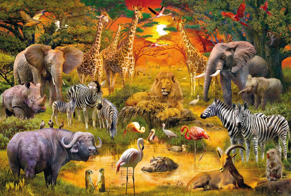 - En lång rad djur har tagit sig ner till vattenhålet för att få lite vatten innan nattens mörker faller på