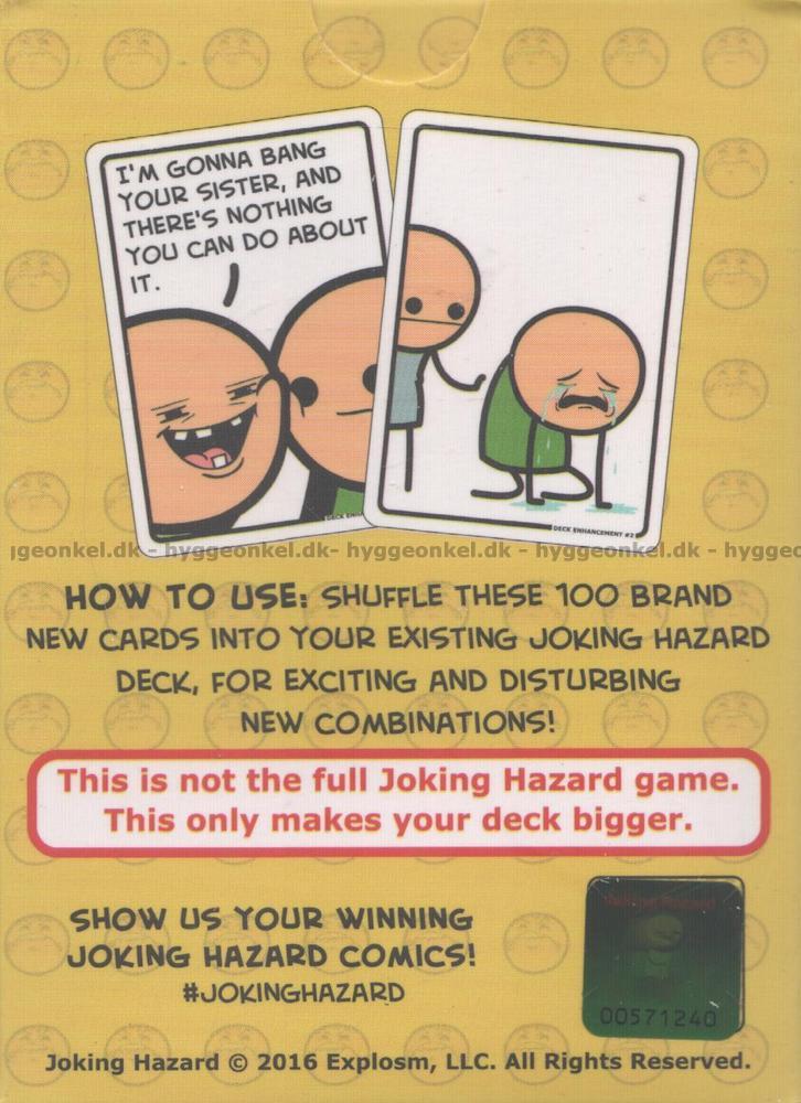 Här får du fler kort att använda i Joking Hazard. För att du ska kunna spela med dessa krävs att du har grundspelet.