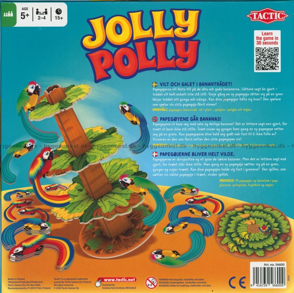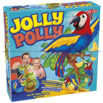 I Jolly Polly är målet att vara den första spelaren som lyckas placera alla sina papegojor i det gungande bananträdet.