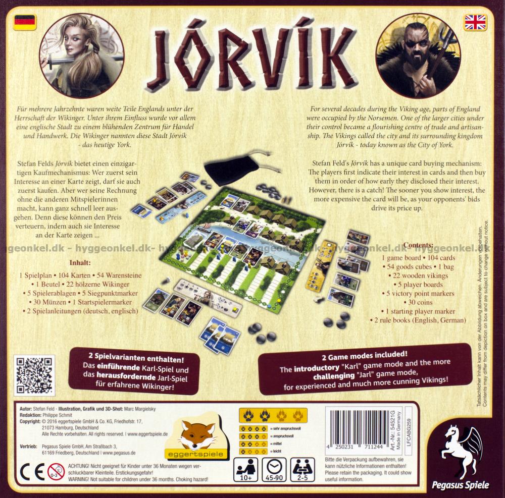 In Jórvík, players assume the roles of Viking jarls. They gather prestige points by trading goods, holding big feasts, funding pillages, commissioning craftsmen and hiring soldiers to defend the city against recurring invasions.