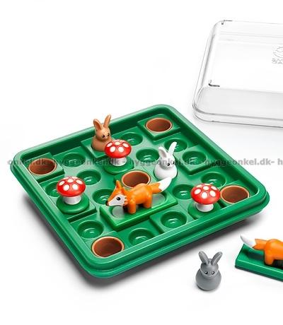 Flytta sedan runt kaninerna och rävarna på spelbrädet så att kaninerna landar i de tomma hålen.