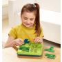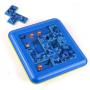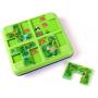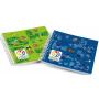Spelplatta som mäter 20 x 20 cm, 4 brickor och häfte med utmaningar.