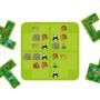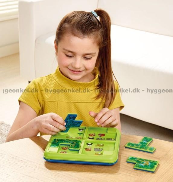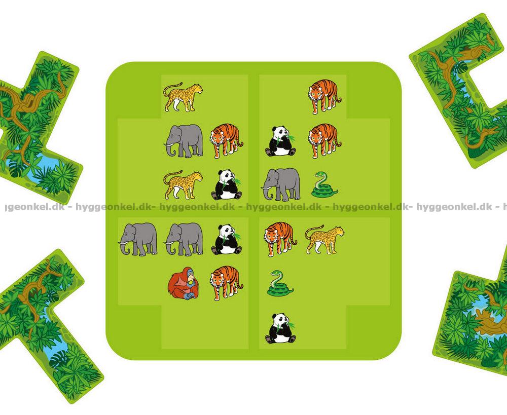 Placera de 4 brickorna på spelbrädet så att man bara kan se de djur som visas i utmaningen.