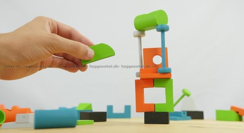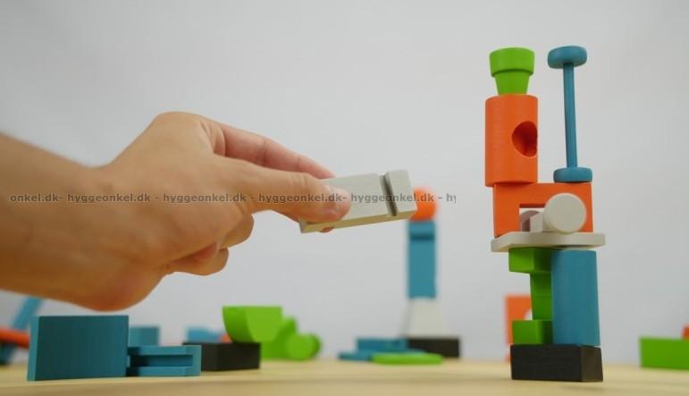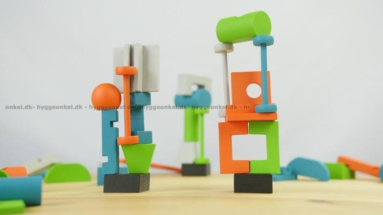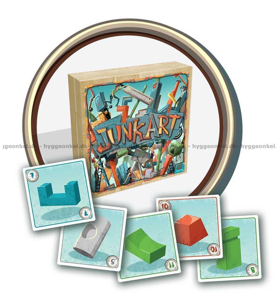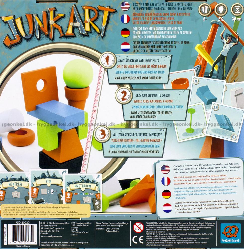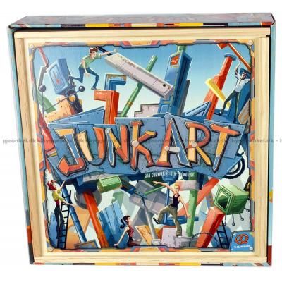 Junk Art kan spelas på över tio olika sätt och det finns 60 stora, färgrika komponenter av trä att bygga med.