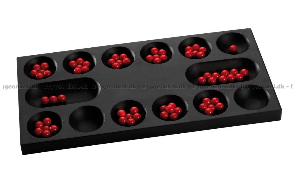 Kalaha är det klassiska brädspelet där det handlar om att samla flest kulor i den egna skålen.