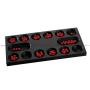 Varje spelare har 6 mindre fördjupningar (kallas ambos) och en större fördjupning (målfältet - kallas kalaha).