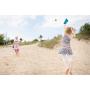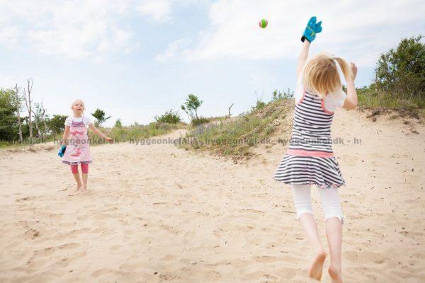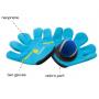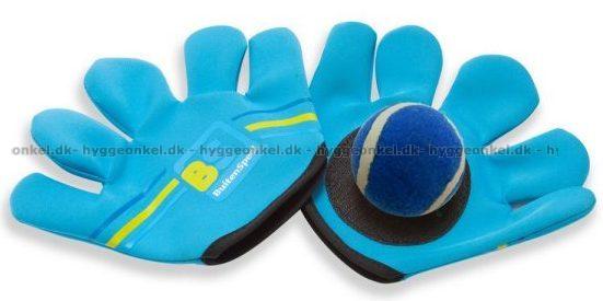 Här får du 2 handskar och 1 tennisboll. Handskarna är 18 cm långa och 23 cm breda. De är avsedda för barn.