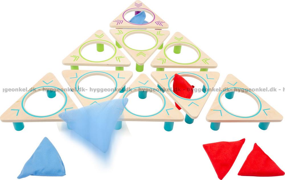 Kasta med ärtpåsarna och se om du kan träffa i hålen på några av trekanterna framför dig.