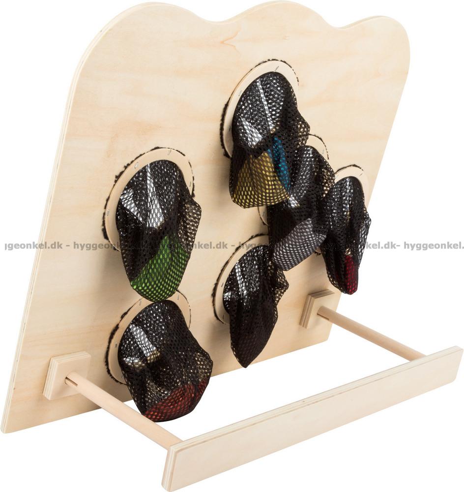 Måltavla i trä (mäter 42 x 35 cm) och 7 ärtpåsar.