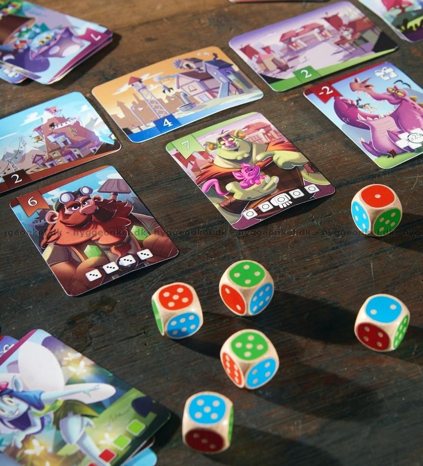 6 tärningar och 65 kort.