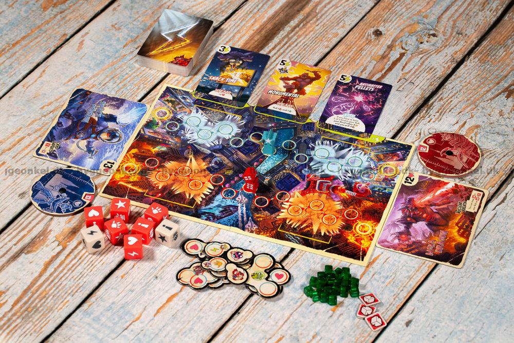 King of Tokyo: Duel är ett spännande brädspel för två spelare där varje deltagare tar rollen som ett mäktigt monster som kämpar om dominans över Tokyo.