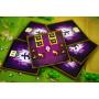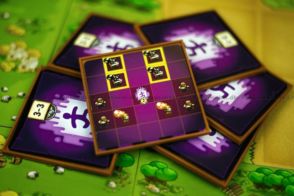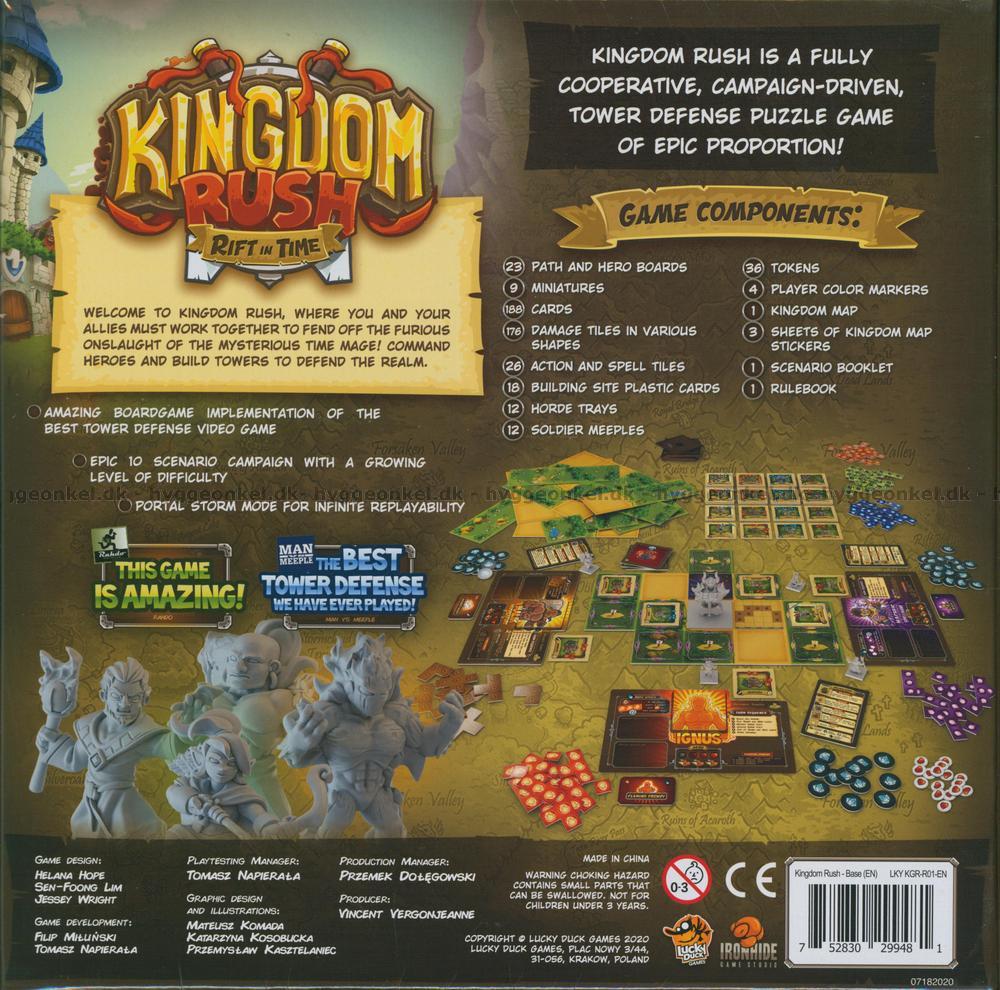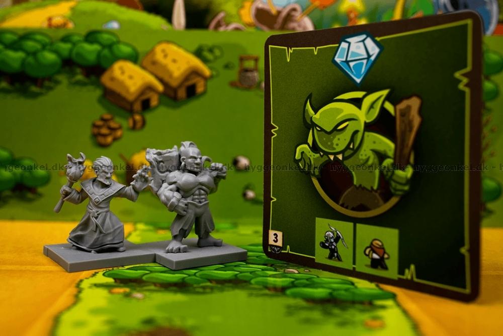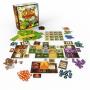 9 miniatyrfigurer i plast, kort, marker, brickor i kartong och spelområden.