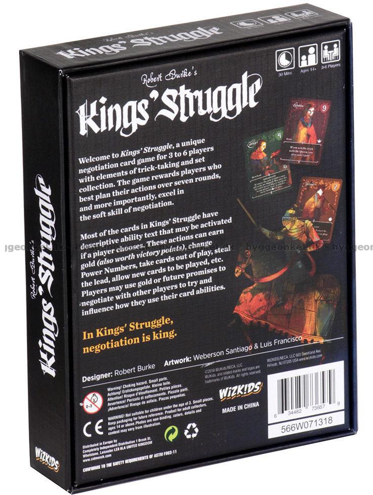 Välkommen till Kings' Struggle - ett kortspel i vilket du ska ta stick, förhandla och samla set av likadana kort. Spelets regler är enkla: Varje spelare spelar ut ett kort i varje runda, och spelet pågår under endast sju rundor. Under de sju rundorna tävlar spelarna mot varandra om att vinna kort genom förhandling och sticktagning.