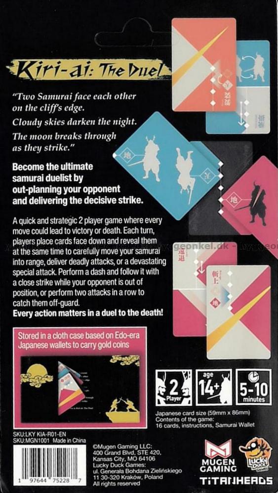 En samuraj tål bara två träffar. Den första skadan försvagar honom – den andra avslutar duellen. Kiri-Ai: The Duel är en taktisk och koncentrerad uppgörelse, där läsning av motståndaren och exakt planering är nyckeln till seger.