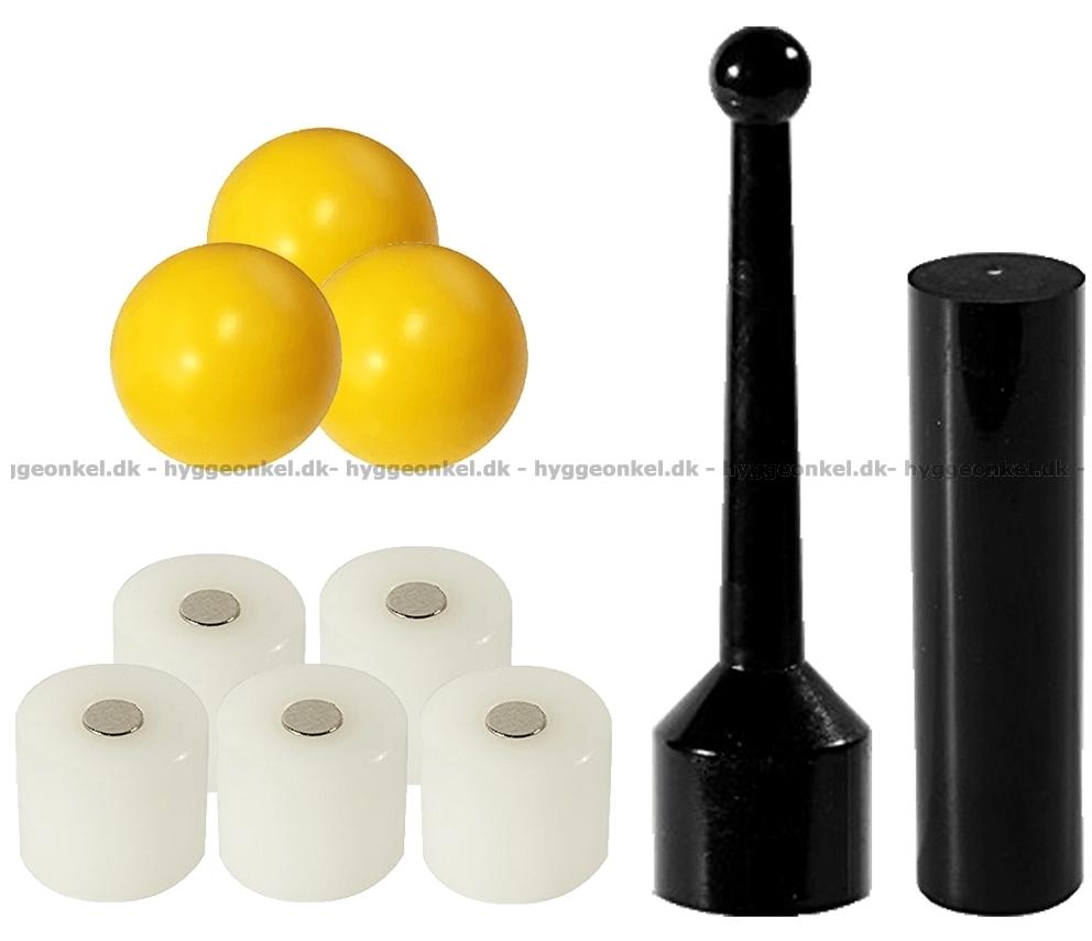 3 gula kulor, 5 vita magneter och 1 magnetspelare (både under- och överdel).