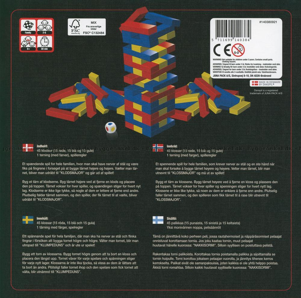 I all sin enkelhet går spelet ut på att bygga upp ett torn av klossar i färgerna blå, gul och röd. Spelarna slår i tur och ordning med en tärning som berättar att det till exempel ska tas bort en röd kloss! Spelaren ska sedan efter bästa förmåga ta bort klossen från tornet utan att det välter. Om det skulle ske är spelaren ute och övriga spelare kämpar vidare tills dess att en totalvinnare kan koras!