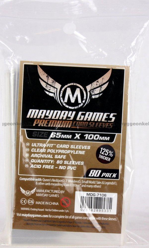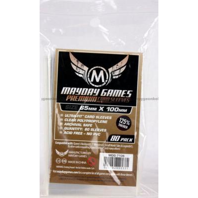 I detta paket får du med 80 kortfickor från Mayday Games i storleken 65 x 100 mm för att skydda dina kort.