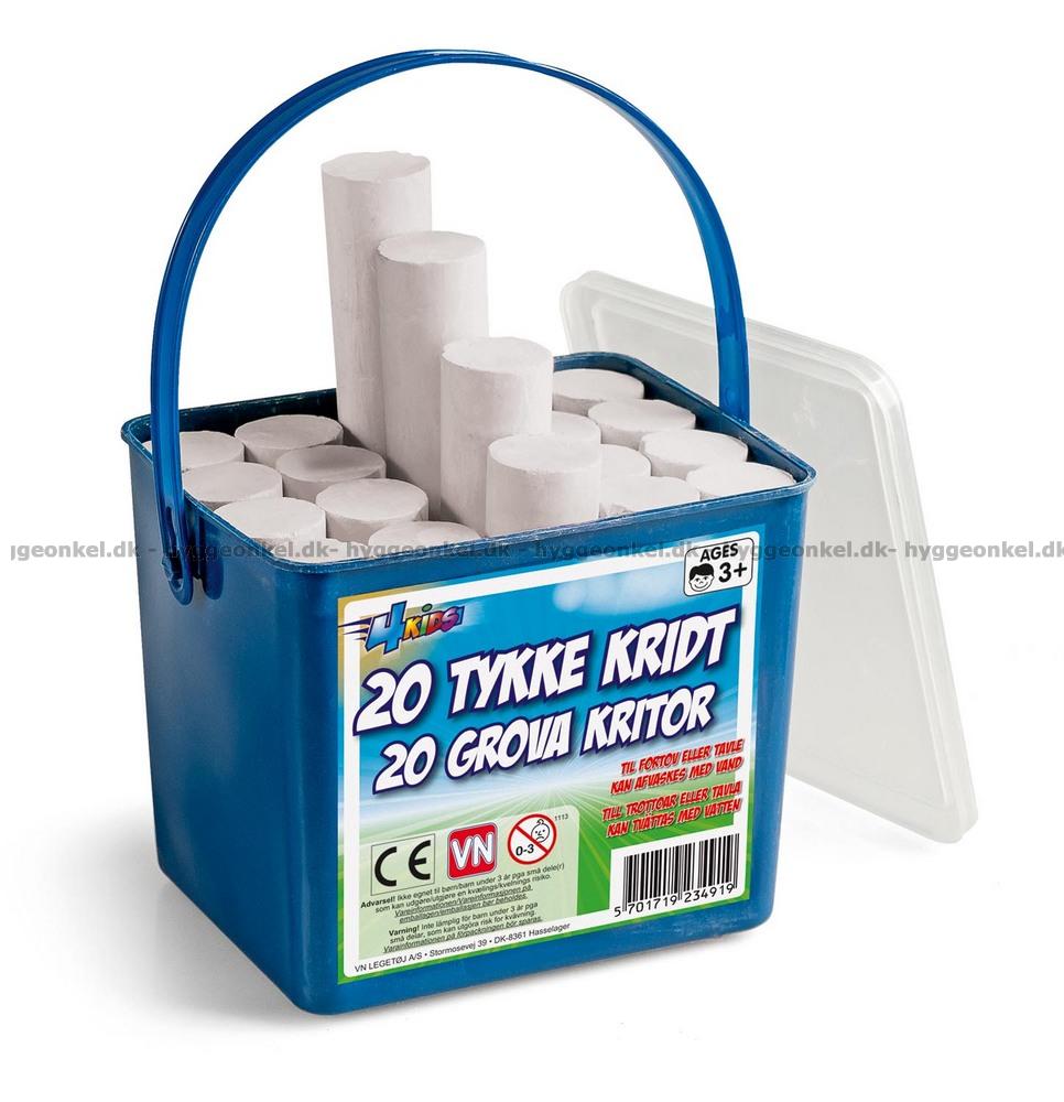 Här får du en hink med 20 tjocka vita kritor/gatkritor.