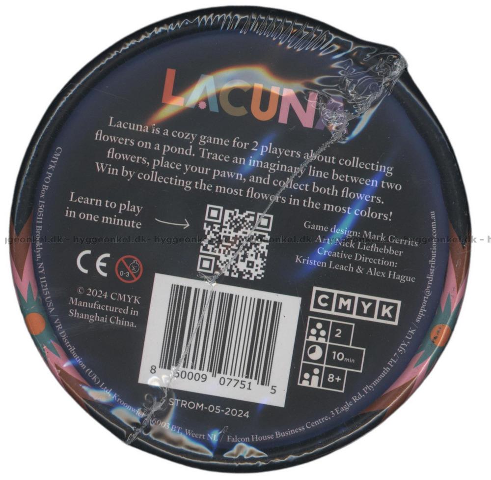 Lacuna utspelar sig vid en stilla dam under nattens mörka himmel. Ordet lacuna betyder ett mellanrum, ett tomrum mellan två saker, och just detta rum är kärnan i spelets berättelse. På den mörka tygmattan flyter 49 blommor i sju olika färger, utspridda som små lysande öar på vattnets yta.