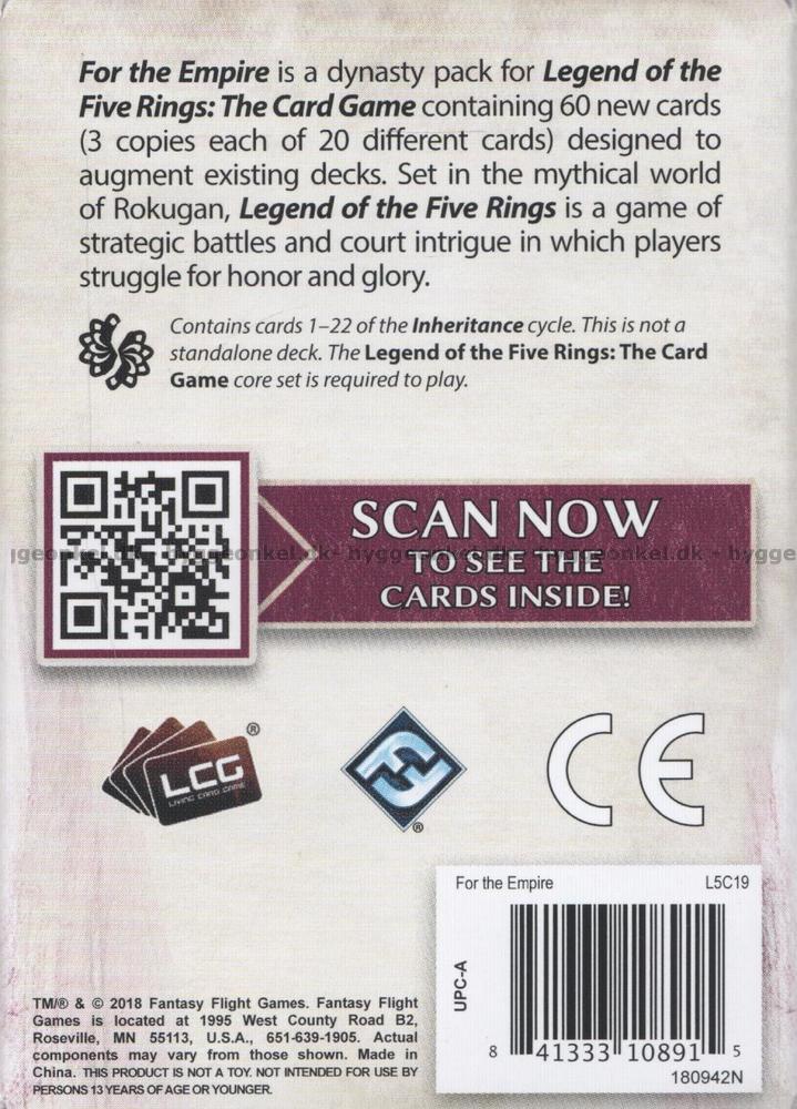 For the Empire är en expansion till Legend of the Five Rings - The Card Game med vilken du kan göra grundspelet lite större.