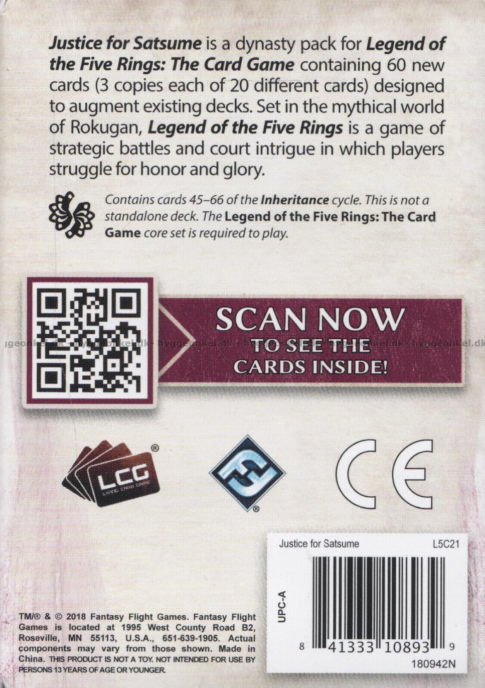 Justice for Satsume är ett Dynasty Pack i "The Inheritance Cycle". Med dessa kort gör du grundspelet lite större.