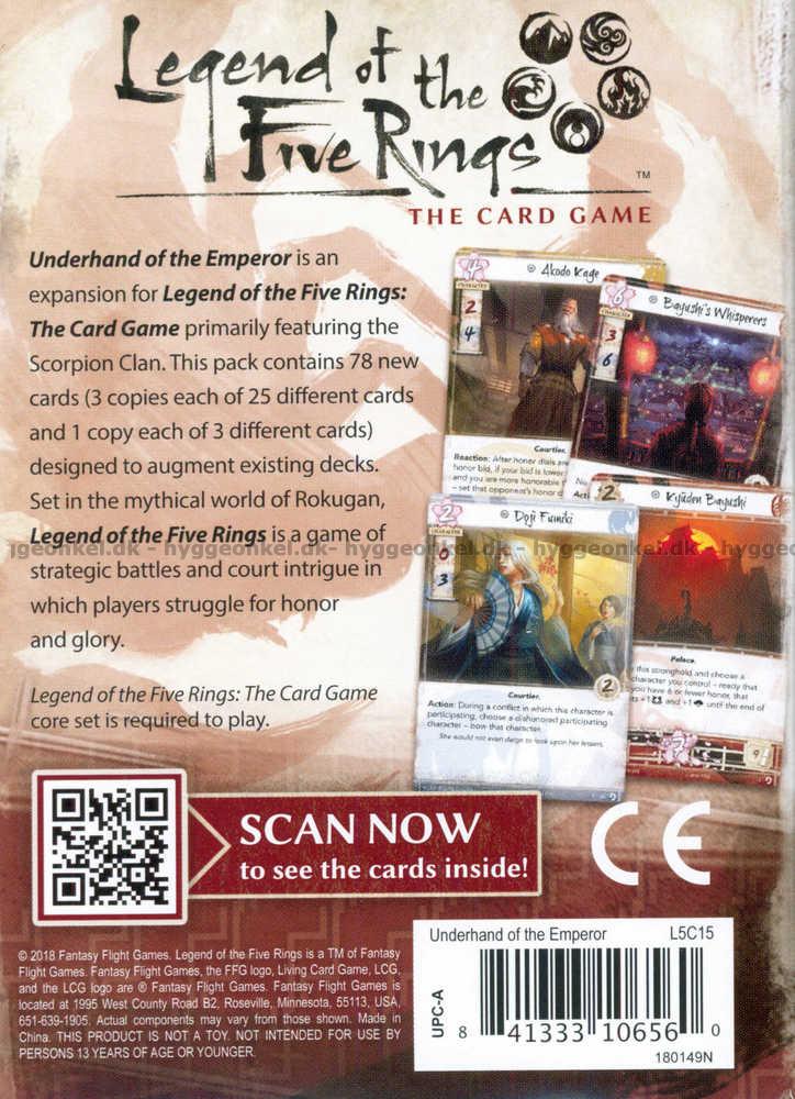 Underhand of the Emperor är en expansion med fler kort till Legend of the Five Rings - The Card Game.