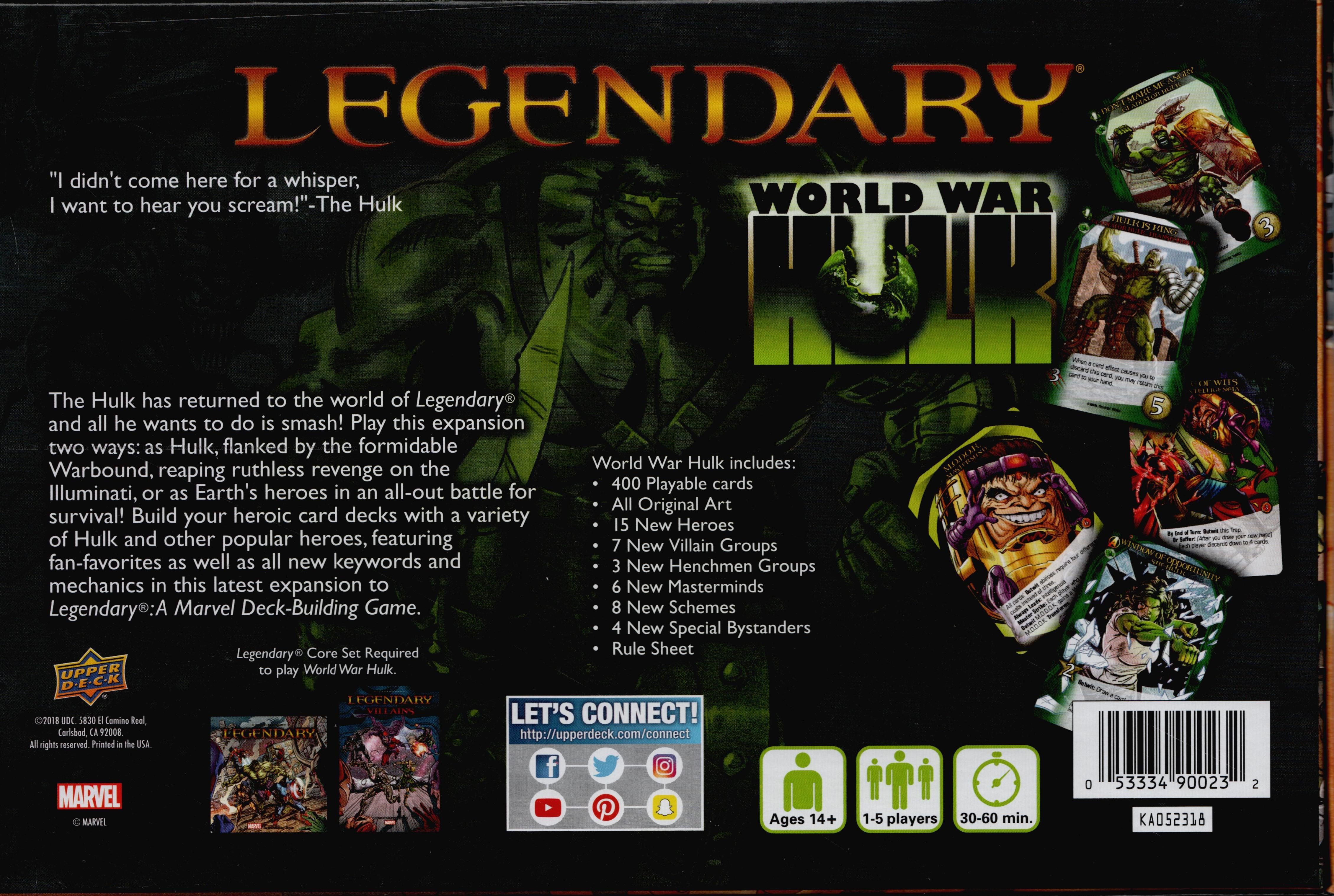Denna expansion är precis som grundspelet på engelska. Du måste ha grundspelet för att få nytta av Legendary: World War Hulk.