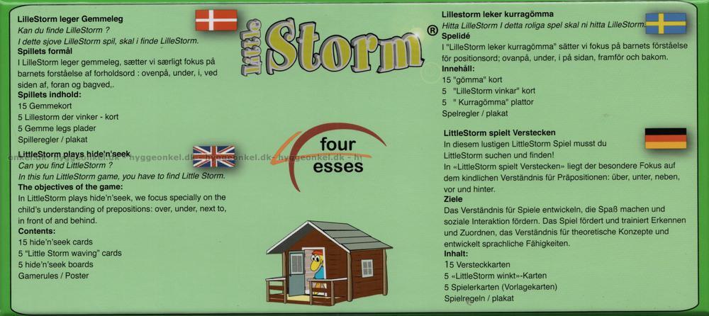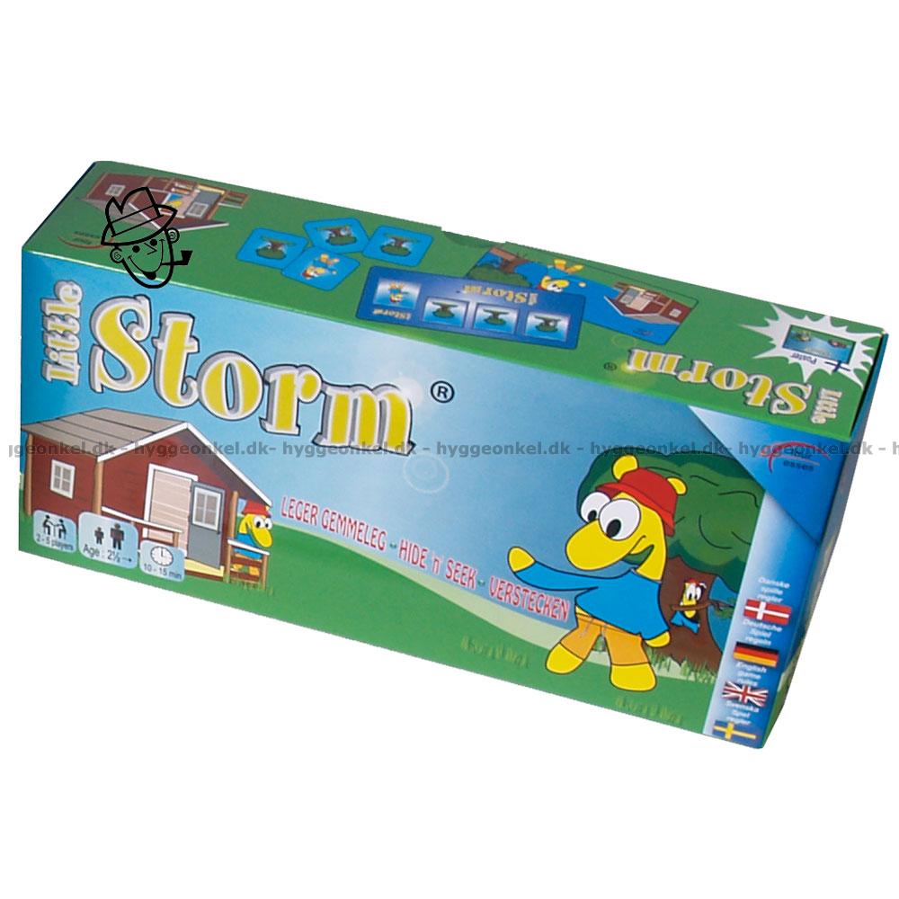 Här är ännu en fullträff i LilleStorm-serien. Den här gången är uppgiften att hitta LilleStorm i en kurragömma-lek. Spelet låter barnen träna på bland annat ovanpå, framför och bakom.