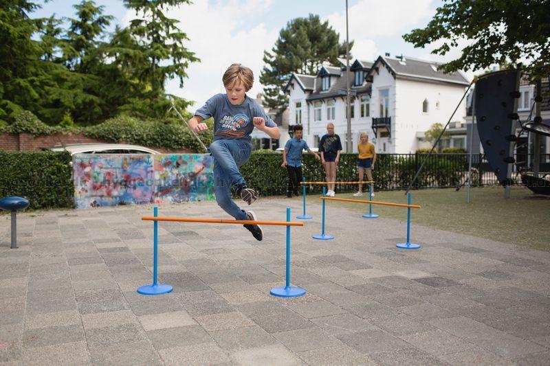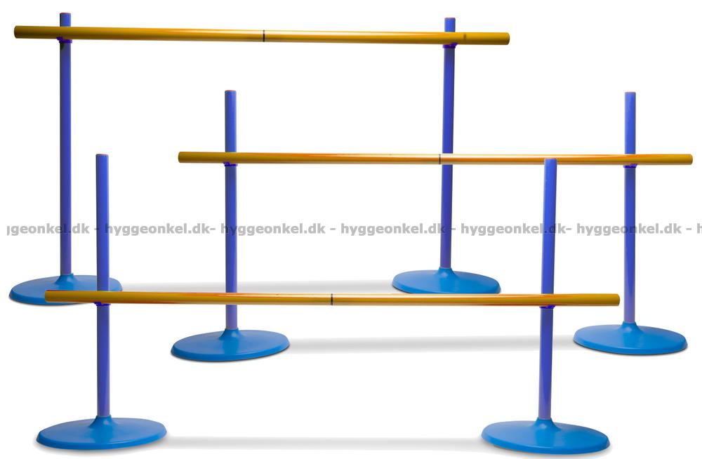 Här får du 3 hinder/häckar som kan användas i en rad olika lekar - till exempel häcklöpning.