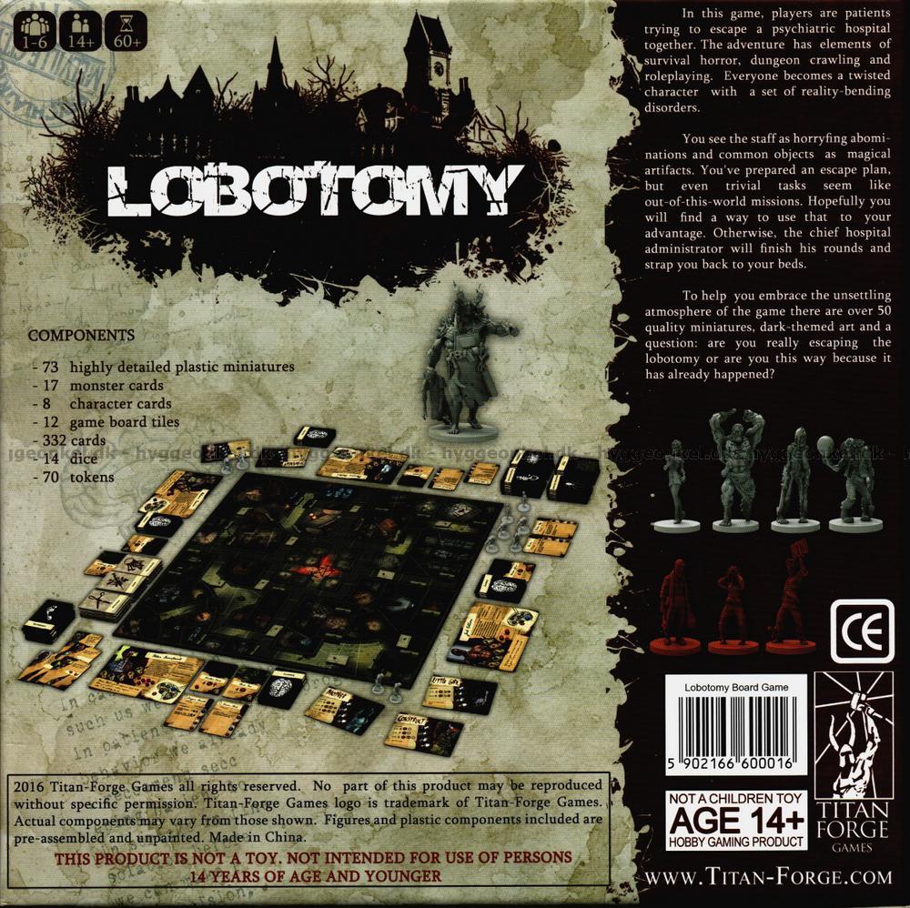 I Lobotomy får ni ta rollerna som patienter som har rymt från ett mentalsjukhus i detta 100% samarbetsspel för 1-5 spelare. I centrum är ett mentalsjukhus från era värsta mardrömmar. Varje spelare kontrollerar en egen, sinnessjuk karaktär med sin egen historia och sina egna vanföreställningar som kan bli till verklighet när som helst. Det finns endast ett mål: att komma ut. Men, det är inte särskilt enkelt när du tror att de anställda är de mest skrämmande monster och sjukhusets föreståndare är den värsta av dem.
