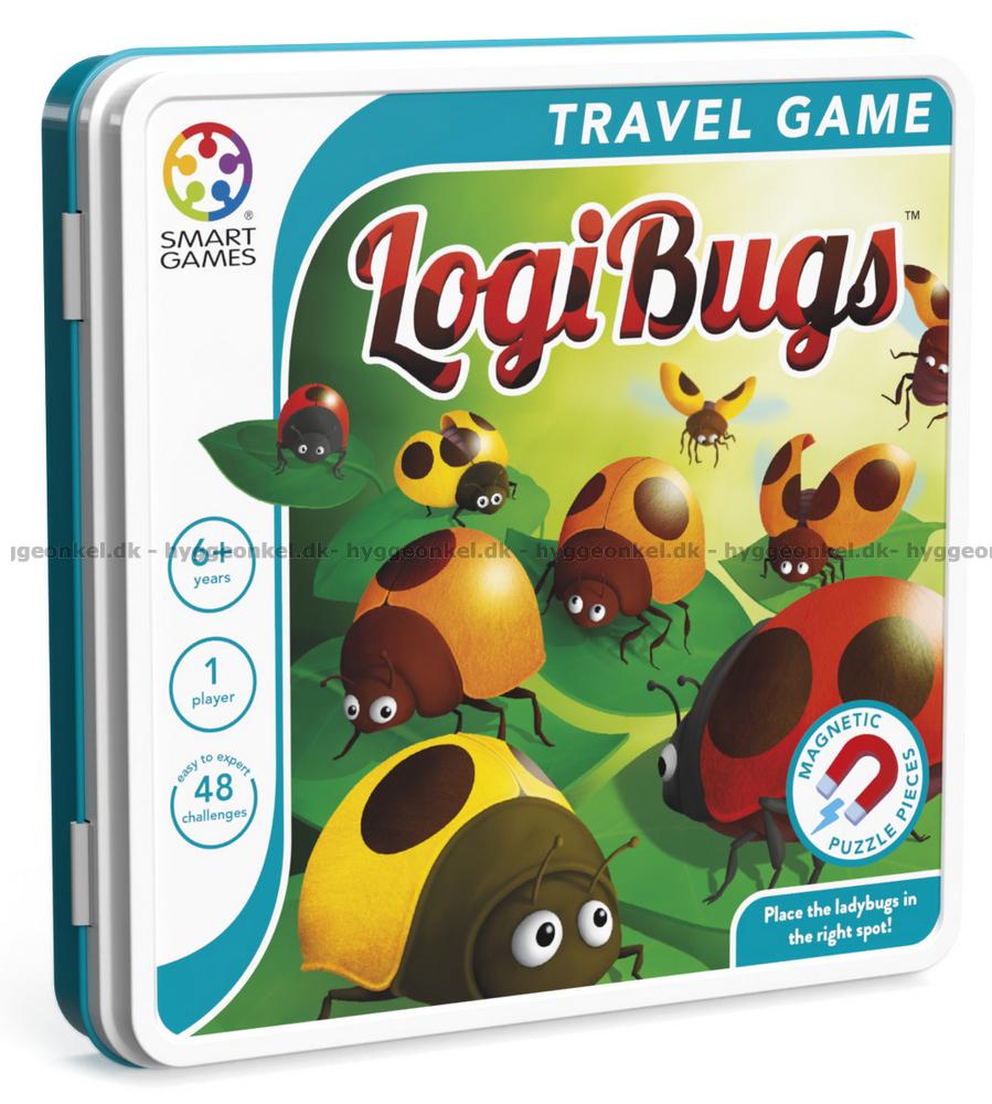 Spelet har magnetiska brickor och är lätt att ta med i resväskan – perfekt för lite underhållning på resan.