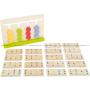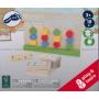 Spelbräde i trä (mäter 26 x 18 x 4 cm) och 18 uppdragskort i trä.