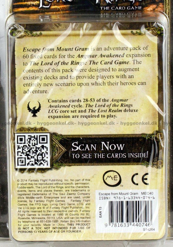 Escape from Mount Gram är en expansion till Lord of the Rings LCG. Här får du fler utmaningar för hjältarna i spelet.