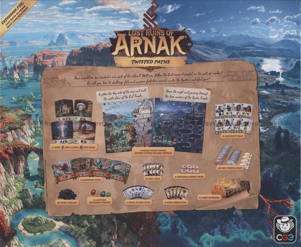 Med denna expansion får du en dubbelsidig spelplan som tar dig till antingen Spindeltemplet eller Uggletemplet – båda med sina egna unika mekaniker och stämning. I Spindeltemplet introduceras mörka brickor, en sällsynt resurs som ger tillgång till att åkalla altaren och använda artefakter på kraftfulla sätt, men de kan kosta dig dyrt i poäng när spelet är slut.