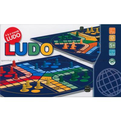 I kartongen hittar du 1 spelbräde för 4 spelare på den ena sidan och för 6 spelare på den andra sidan, 2 tärningar, pjäser och så givetvis också svenska spelregler om du skulle råka ha glömt bort hur man spelar.