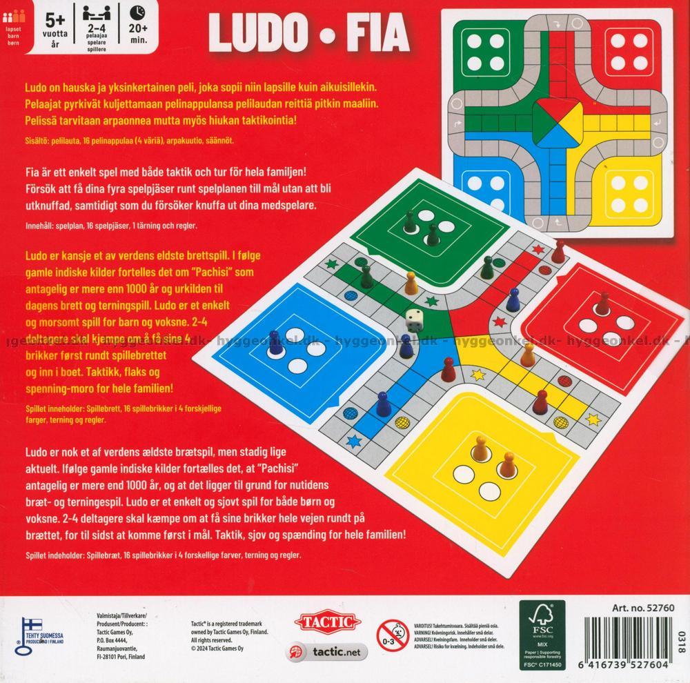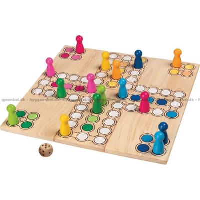 Här får du ett helt klassiskt Ludo-spel i fina, klara färger.