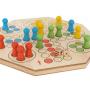 Ett stort spelbräde i trä. Brädet har en diameter på 50 cm och mäter 3 cm på höjden.