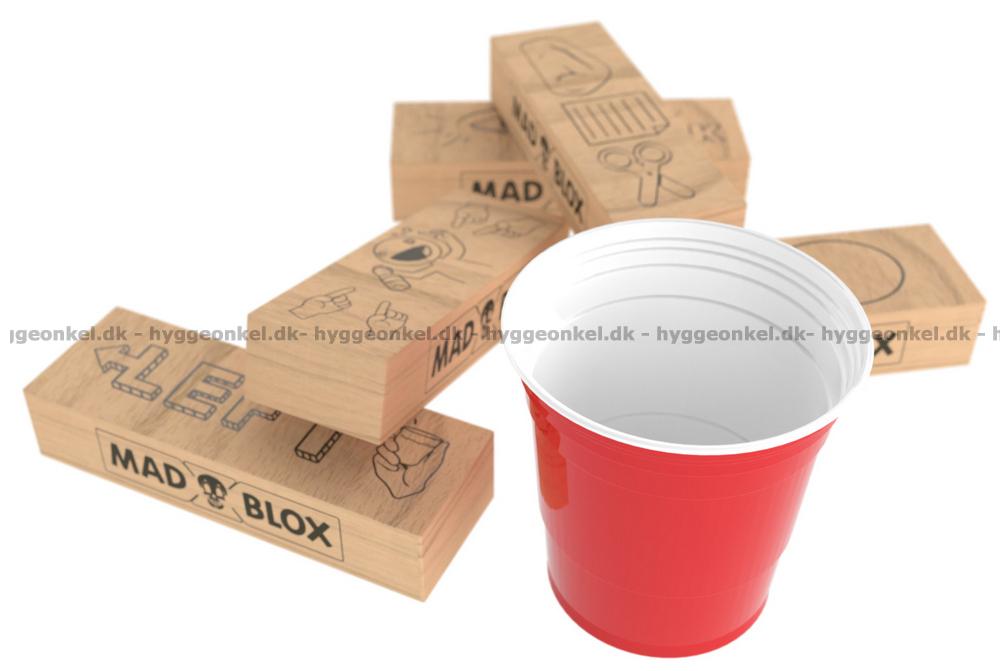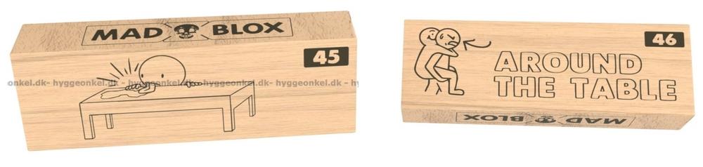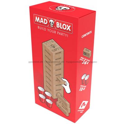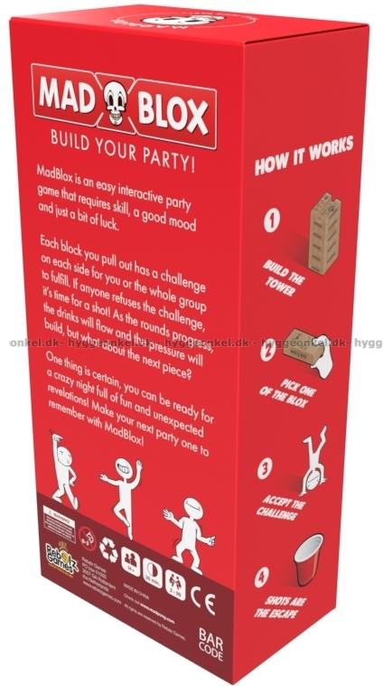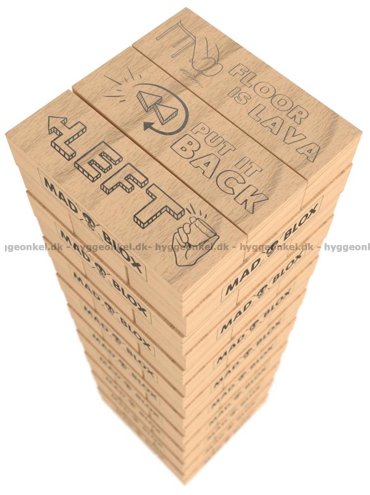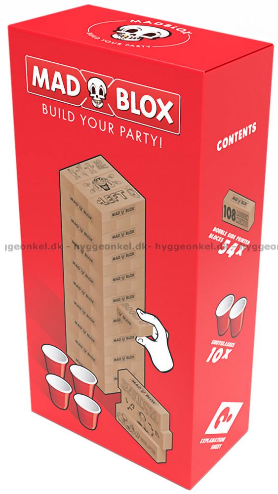 Twisten i MadBlox kommer av själva klossarna. På varje kloss finns två utmaningar. Spelaren som drar ut en kloss ska välja mellan dessa två.