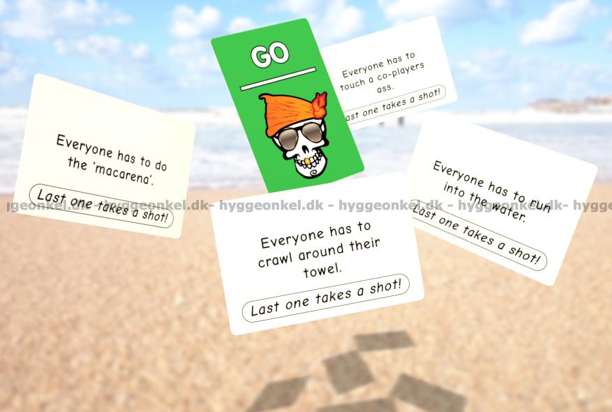 Go: Spelaren ska utföra den handling som beskrivs på kortet och de andra spelarna ska göra detsamma. Den långsammaste spelaren får ta en shot.
