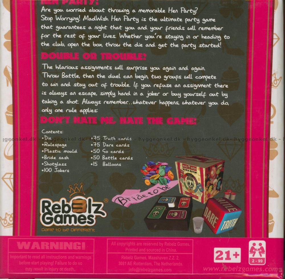 Detta festspel är speciellt anpassat för möhippor och man kan stöta på många roliga frågor och utmaningar. Observera att detta är ett partyspel för vuxna.