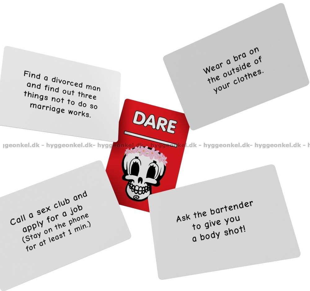 Battle: Deltagarna delar sig i två lag och startar den duell som finns beskriven på kortet. De som förlorar får ta shots.