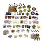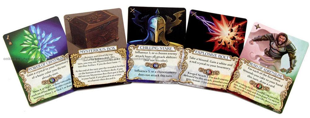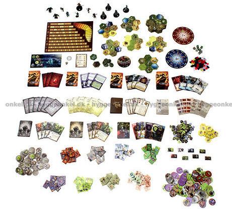 I boxen hittar du mängder av kort, brickor, marker, pjäser, miniatyrfigurer och tärningar.